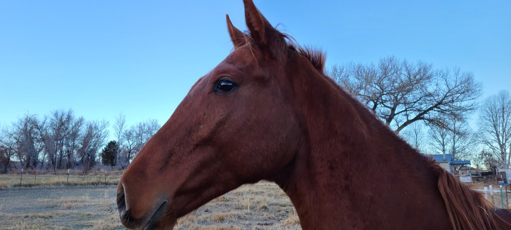 A friend tagged me in a post about those looks a horse gives us basically when they are saying, “Don’t you dare!” I replied how I thought I was fluent in horse, eye language as a joke.